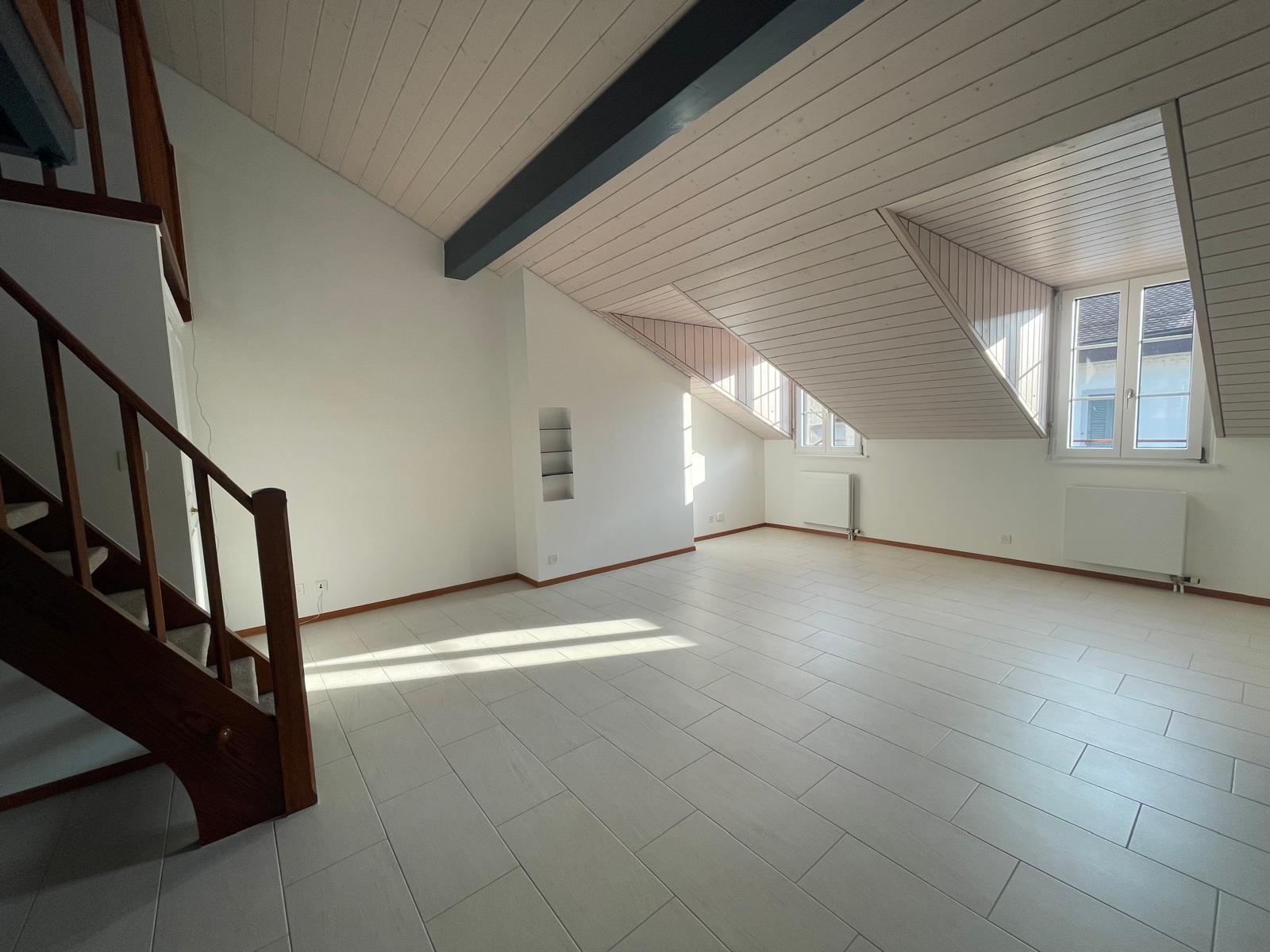 Cet appartement sous combles d'environ 100 m2 saura vous séduire tant par son emplacement idéal que par sa spacieuse surface. Il se décline ainsi: