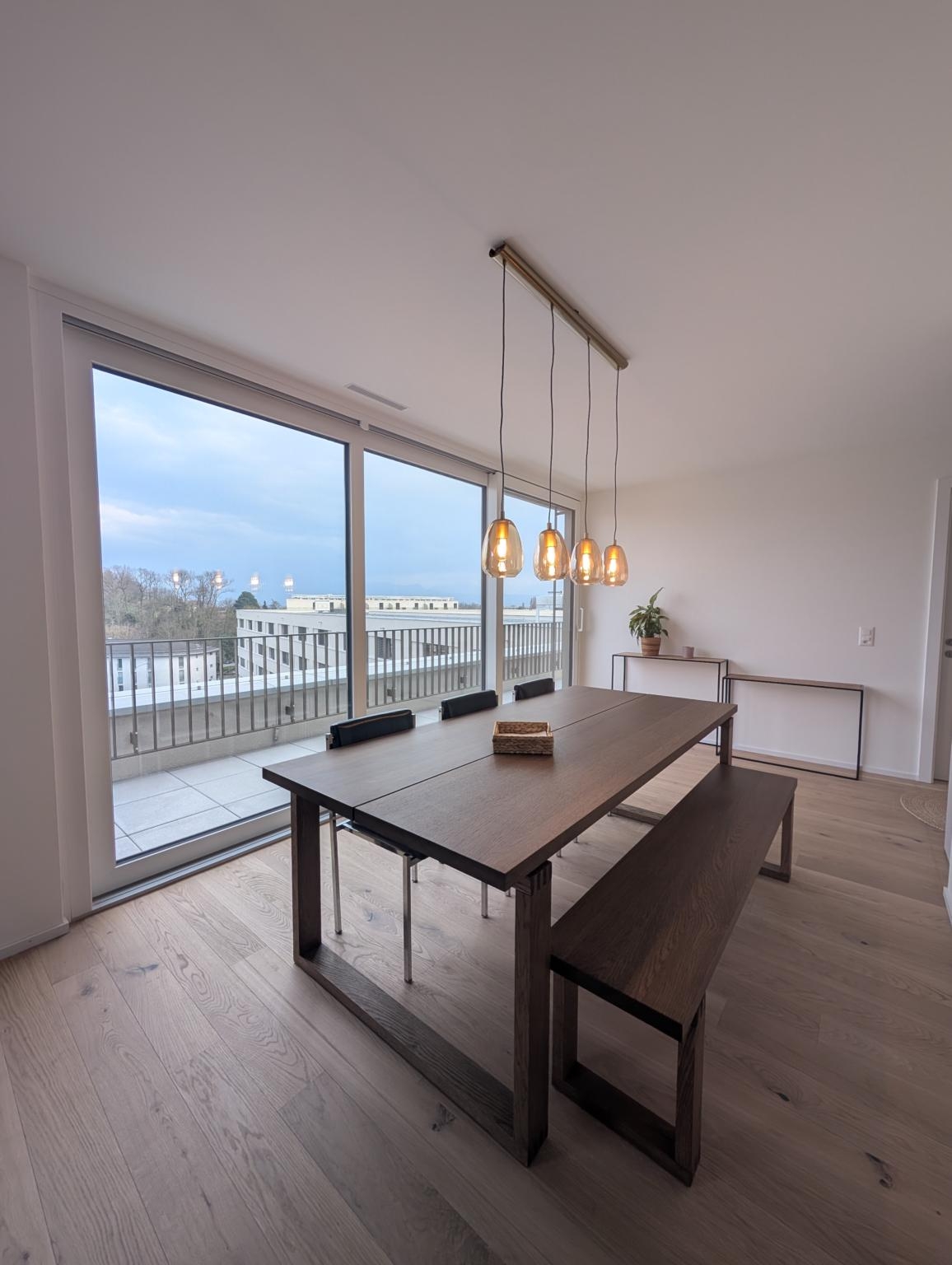 Offrant une vue imprenable sur la ville et un bout du lac, cet appartement allie confort, élégance et modernité.