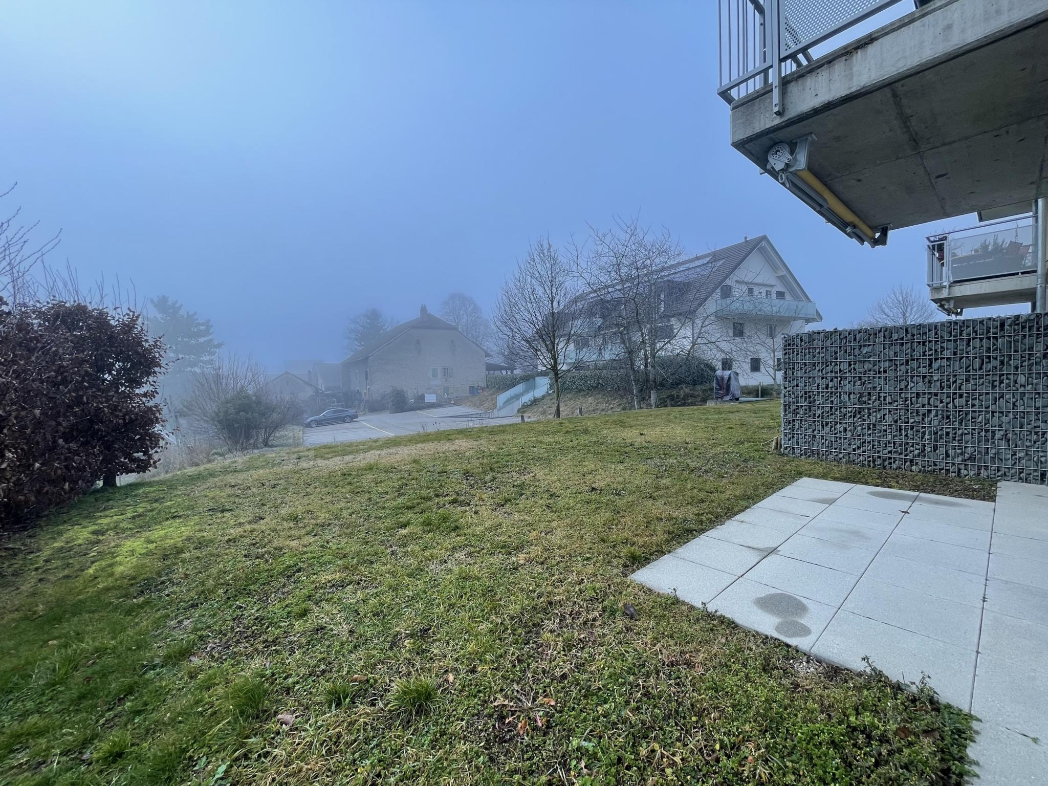 Spacieux appartement de 3.5 pièces au rez-de-chaussée avec une grande terrasse situé dans un immeuble récent de 6 logements, en bordure de zone agricole.