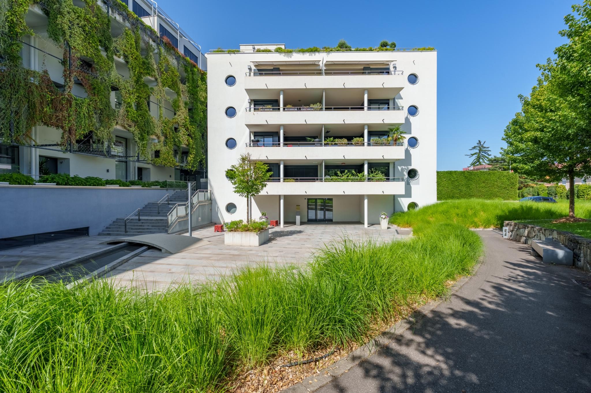Il est situé à 10 minutes à pied du lac, des transports publics, des commerces, des écoles et garderies, ainsi qu'à 5 minutes en voiture de la sortie d’autoroute de Nyon.